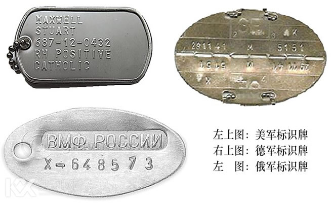 二战以来,美国、俄罗斯、德国、日本等30多个国家军队相继配发不同样式的军人身份识别牌。随着信息技术的不断发展,多国军队已在探索改进传统军人身份识别牌,着手加装磁条、条形码和微型芯片,增加指纹、面相、DNA和医疗史等详细信息,更好地服务战伤救护、遗骸确认和平时管理。