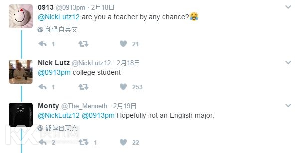 而且,在发出这条推文后,马上有姑娘火热地开始勾搭Nick,姑娘说,“对我来说,你可能有点年轻,但我还是想约你,而不是绿你。”