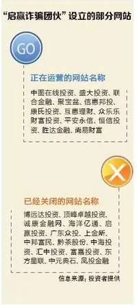 “启赢诈骗团伙”先后设40余家伪P2P平台以高息吸引投资,设置提现障碍骗取更多充值资金,然后快速关闭网站