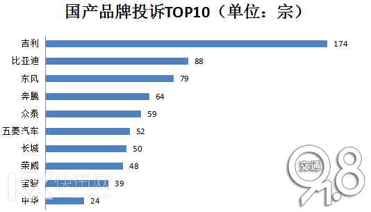 以上数据来自杭州交通91.8官方APP“开吧”维权板块的绝对数据。统计日期2015年12月21日至2017年3月5日。投诉数量与销量有一定关系,以上分析仅供参考。