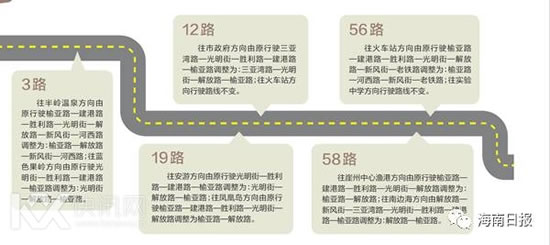 21日,记者从三亚市交通运输局获悉,由于胜利路地下综合管廊建设施工需要,三亚市公安局交通警察支队将于2017年3月23日起对胜利路光明街至新建街路段实施交通管制,双向禁止机动车通行。交通管制期间,为方便市民和游客乘坐公交车,决定对途经上述路段的5条公交线路作出临时调整。
