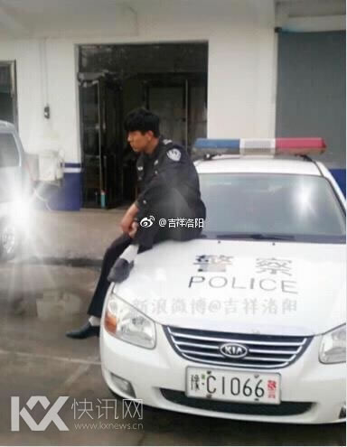通报称,2017年1月27日、3月8日,伊川县公安局交警大队二中队协警朱晓某(男,24岁)站到警车车顶或坐在警车引擎盖上,让协警杨现某为其拍照。3月21日,朱晓某将照片发布到百度贴吧。