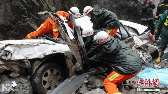 3月21日下午,福建省寿宁县竹管垅乡辖区省道302金鸡巢加油站附近发生山体溜方,一辆路过轿车被落石砸中,司机当场死亡。接到报警后,寿宁县公安消防大队官兵立即出动抢险救援车赴现场施救。接到报警后,寿宁县公安消防大队官兵立即出动抢险救援车赴现场施救。司机被救出时已没有呼吸。