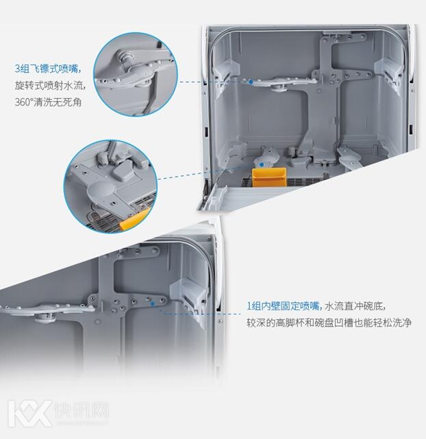 在80℃的高温环境下,配合松下TR1系列洗碗机机体内3组飞镖式喷嘴,以及1组固定式喷嘴喷射而出的水流,360°全方位覆盖碗盘,油污、细菌都将无所遁形,平时手洗不容易清洗干净的死角凹槽处,也能做到一并洗净,这才是真正意义上的将碗盘彻底“洗白”,而不是以往用温水地清洗就简单了事。