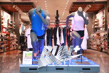 店铺的陈列充满兰马的元素,让你能感受到大赛即将来临,店员都身着兰马的参赛TEE,整体的素质很高,对顾客的服务非常到位,观察同一时段的几个运动店的客流量,乔丹体育的店铺是最大的,而且消费者的年龄结构涵盖老中青。