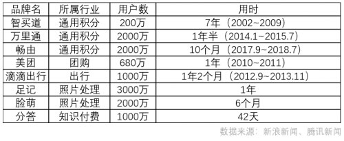 如今跻身国内互联网行业巨头之一,且拥有6亿用户的的美团,当初在推广团购业务时,花了一年的时间做到了680万用户;出行巨头滴滴在2012年上线之初,花了一年多的时间才积累了1000万用户。