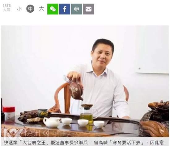 据了解,余联兵出生于四川达州一个普通农村家庭,2009年起创立优速快递,担任优速物流有限公司董事长。