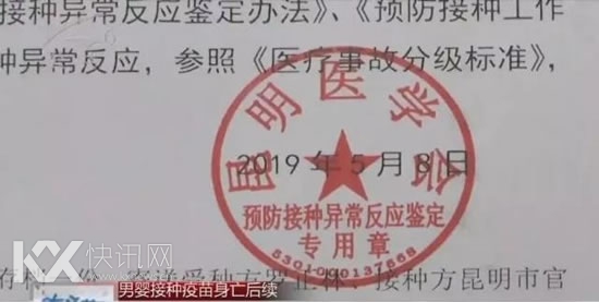 事后,官渡区卫生监督局和区疾控中心介入调查,罗女士提请了尸体检验和疫苗鉴定。近日,罗女士拿到了昆明医学会出具的鉴定认定:该案属于预防接种异常反应,损害程度为一级甲等。