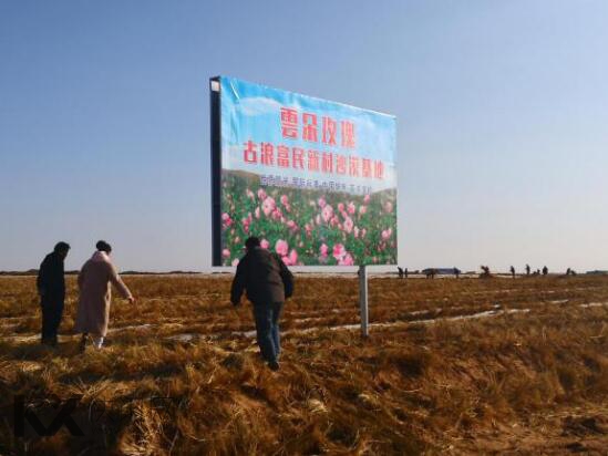 此次试种云朵玫瑰的黄花滩生态移民区富民新村就处在腾格里沙漠南缘。结合易地扶贫搬迁,古浪县在移民区外围完成工程治沙1.56万亩,在田间地埂埋压麦草沙障2.2万亩,栽植梭梭苗木500多万株,目前该区域流沙已基本固定,这为云朵玫瑰营造了良好的生长环境。