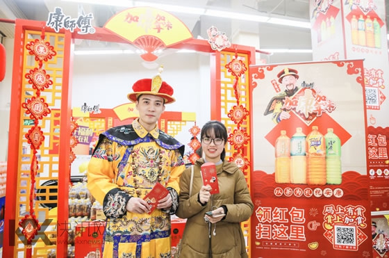 康师傅饮品在线上玩得如此炉火纯青,线下也不豪不逊色!真人康熙现身康师傅饮品黄金大店撒现金红包雨为春节年味加码。活动现场,收到这份意外“惊喜”的消费者,无不洋溢着欣喜的笑容!每个红包里不同金额的祝福,让广大消费者感受到了康师傅饮品满满的诚意的同时,也提升了大众对品牌的好感度。