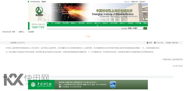 中科院上海药物研究所官网声明。