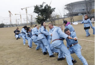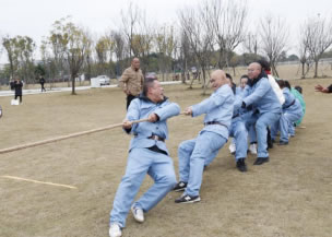 接下来是拔河比赛,比赛哨声一响起,场上的队员们齐心协力,一同高呼着“一二,一二”,双手紧握长绳,憋足了劲拼命往后拉,体现出了团队的合作能力,只有凝心聚力,才能共创佳绩。