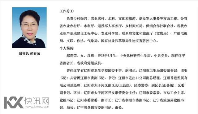 据辽宁省政府官网介绍,辽宁省目前有8位副省长,郝春荣排名第6。
