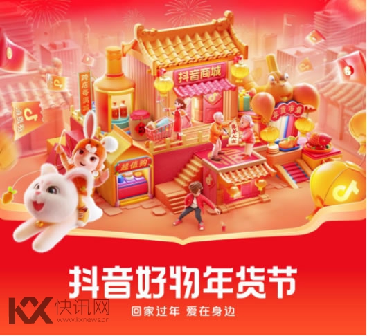 来抖音好物年货节,乐享全场新春放价,跨店每满150减20,与抖音电商一起迎接兔年!