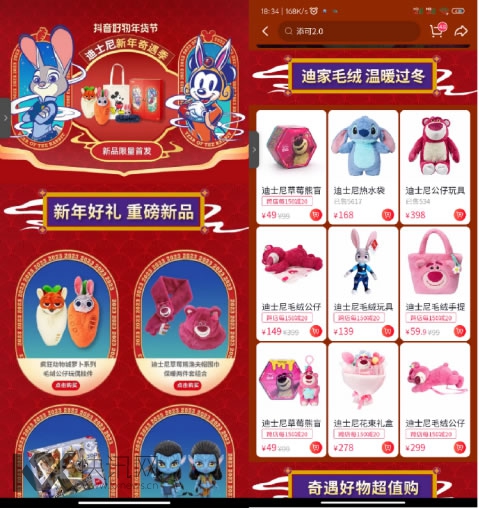 逛抖音商城,迪士尼兔年新品限量首发!朱迪兔尼克闪电毛绒公仔、草莓熊水果派对盲盒、可爱趴趴草莓熊等,实属陷入毛绒天堂~