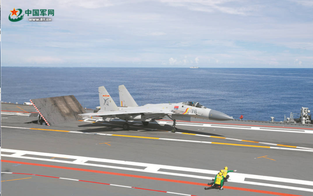 歼-15战斗机在山东舰上准备起飞。中国军网 图